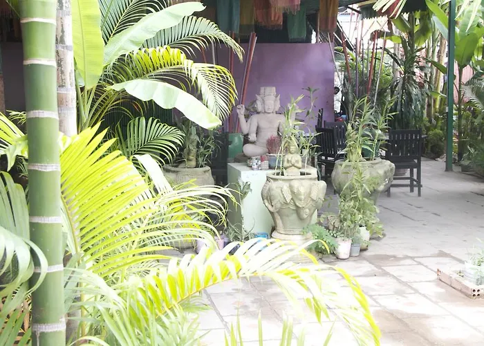 シェムリアップにあるホテルはワット プレア プロム ラット少し離れたの一等のところにあります。 シェムリアップのPalm Garden Lodgeから1.7キロメートルの距離のところには、プレアンチェックレアンチョムの礼拝所があります。 宿泊施設はKesor Spa数歩の距離です。 この2つ星ホテルは、シェムリアップ国際空港から5で、VCE Station for es from Laosバス停から歩いて5分の場所にあります。